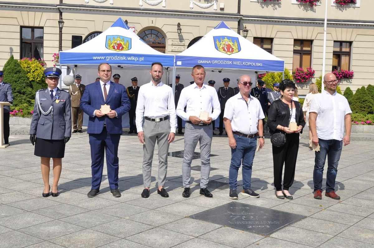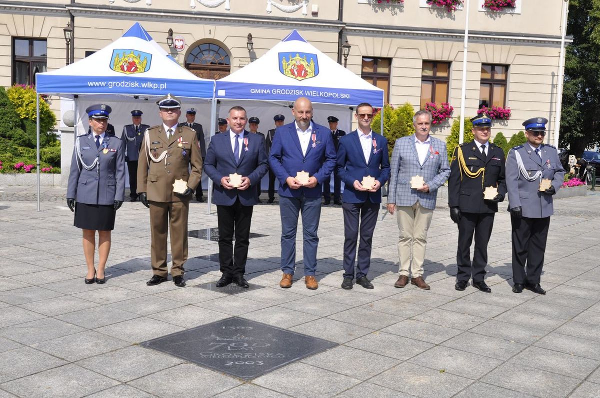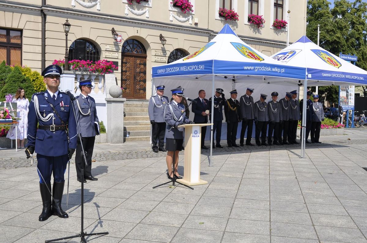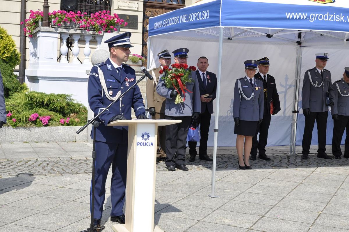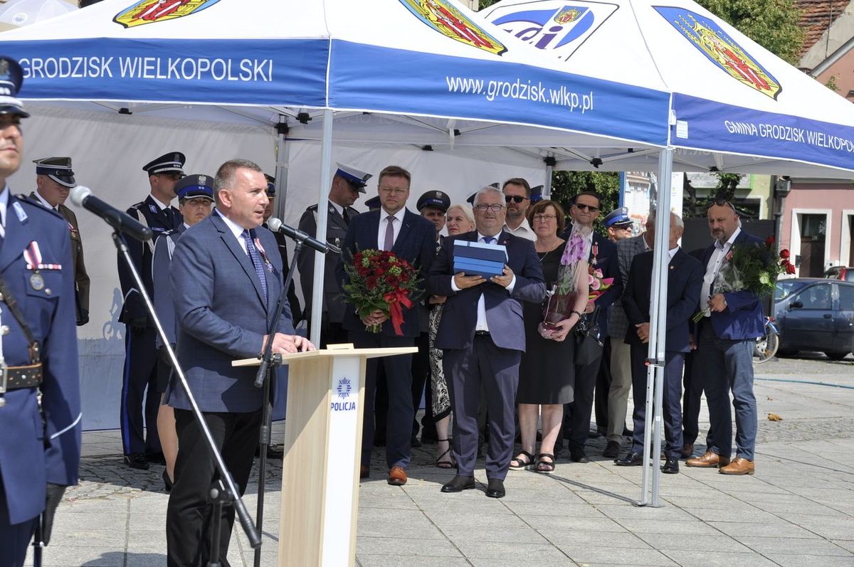 Na wstępie goście usłyszeli krótki zarys historyczny powstania grodzkiej Policji. W uroczystości uczestniczyli Pierwszy Zastępca Komendanta Wojewódzkiego Policji w Poznaniu insp. Sławomir Piekut, Komendant Powiatowy Policji w Grodzisku Wlkp. mł. insp. Roma Figaszewska wraz z zastępcą kom. Arturem Ratajczakiem oraz policjanci, pracownicy cywilni Komendy Powiatowej Policji w Grodzisku Wlkp.., policyjni emeryci oraz przedstawiciele lokalnych samorządów.