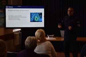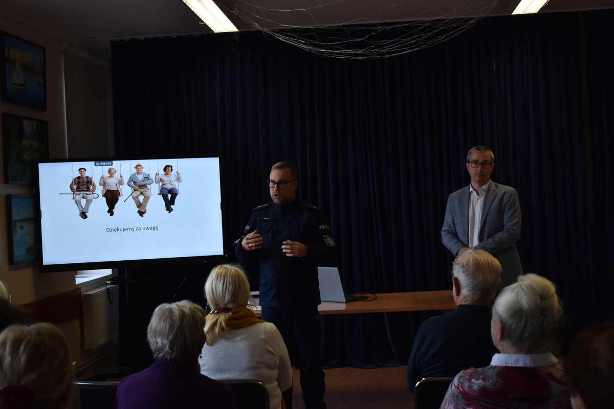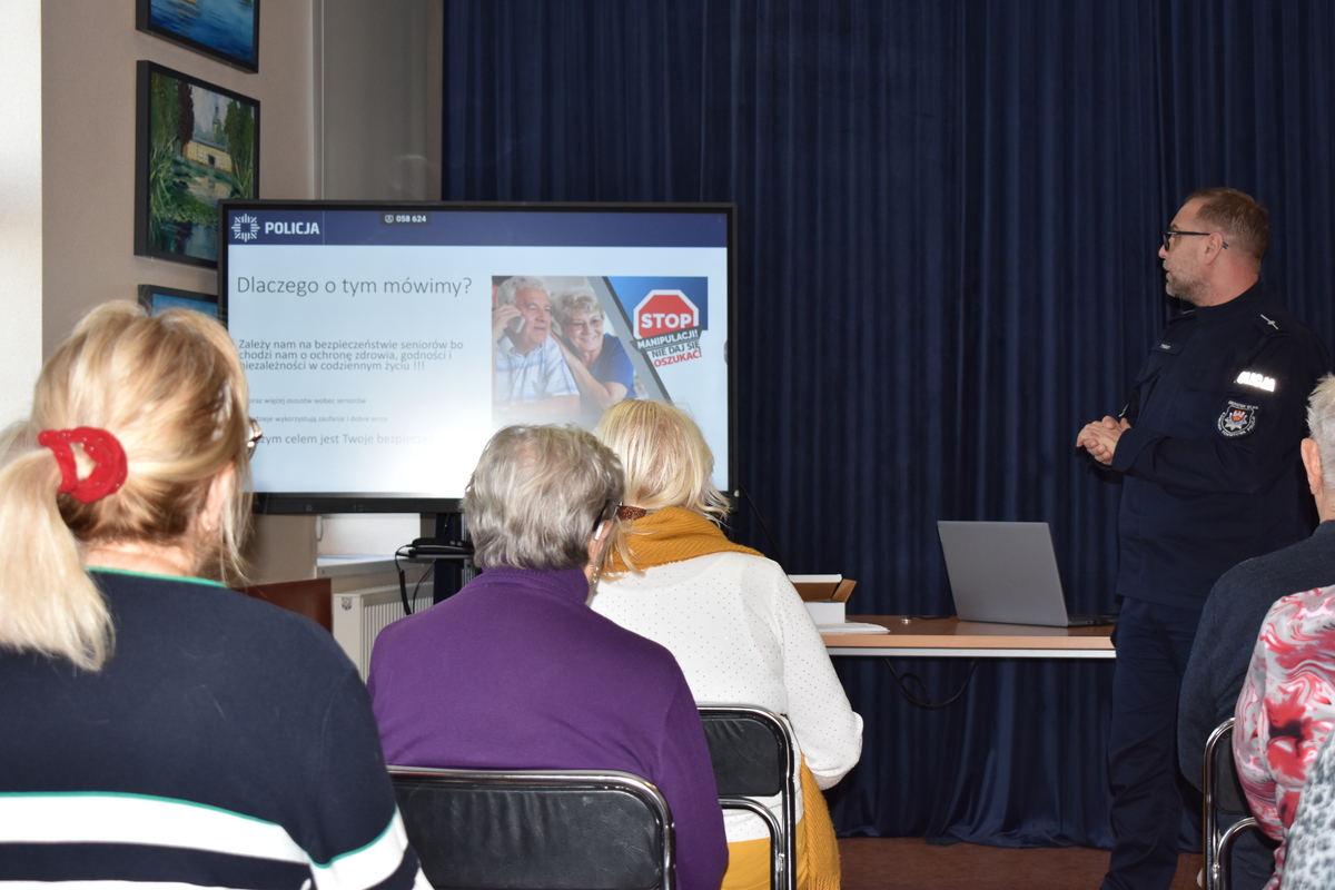 Prelegent zachęcał seniorów, by korzystali z pomocy zaufanych członków rodziny lub pracowników banku, jeśli mają jakiekolwiek wątpliwości co do autentyczności kontaktu.