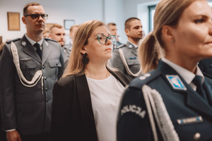 Insp. Mirosław Gogołek w swoim wystąpieniu podkreślał, że choć kierował grodziską jednostką stosunkowo krótko, był to dla niego bardzo dobry i intensywny czas. Jak zaznaczył, szczególnie cenił sobie współpracę z funkcjonariuszami oraz pracownikami komendy, a także z lokalnymi samorządowcami i przedstawicielami instytucji, takich jak Prokuratura czy Straż Pożarna.