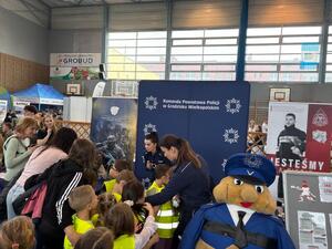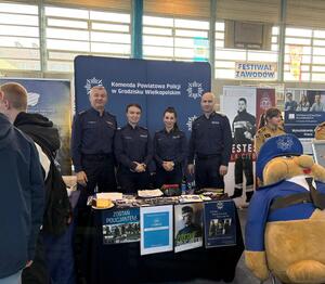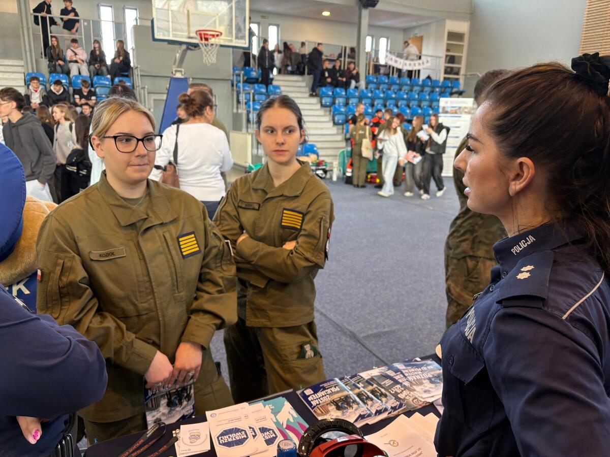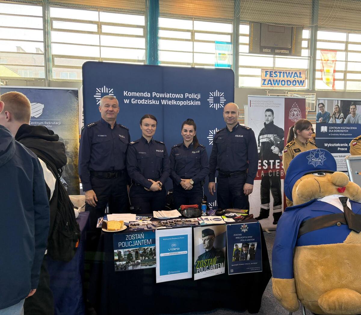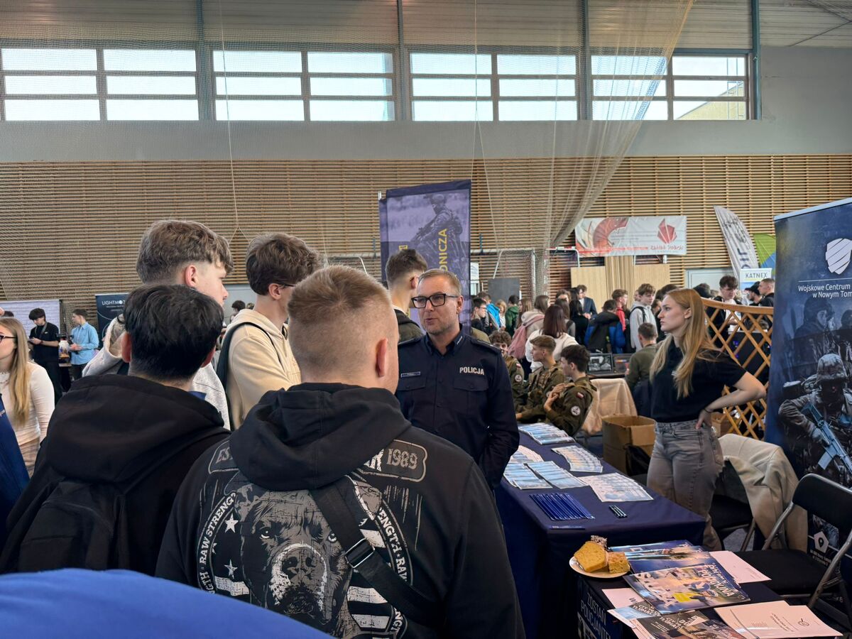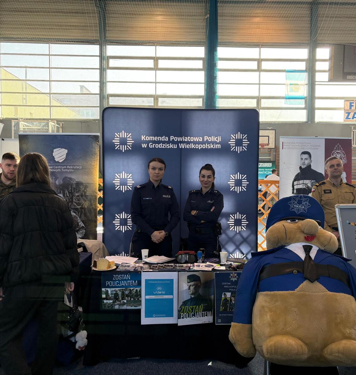 Jak co roku w wydarzeniu uczestniczyli również funkcjonariusze Komendy Powiatowej Policji w Grodzisku Wielkopolskim, którzy zaprezentowali specyfikę służby w Policji oraz przybliżyli młodzieży wymagania stawiane kandydatom do formacji. Policjanci opowiadali o codziennej służbie, możliwościach rozwoju zawodowego oraz ścieżce rekrutacyjnej do Policji. Stoisko cieszyło się dużym zainteresowaniem wśród uczniów, którzy chętnie zadawali pytania i rozmawiali z funkcjonariuszami o pracy w mundurze.